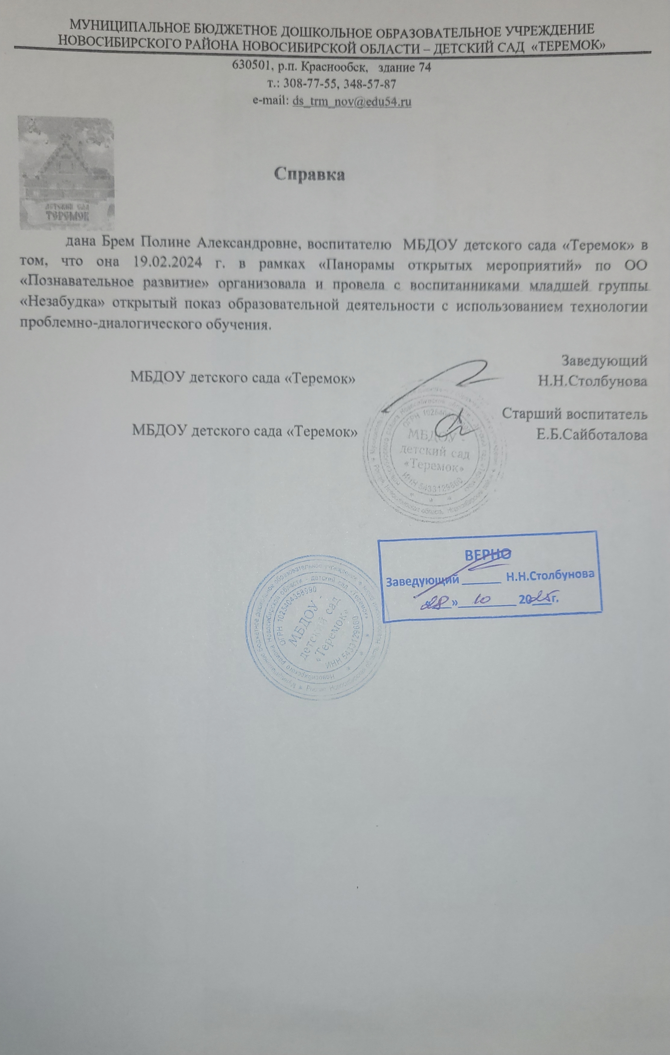 Справка об организации и проведении с воспитанниками младшей группы открытого показа образовательной деятельности с использованием технологии проблемно-диалогического обучения, 2024г.