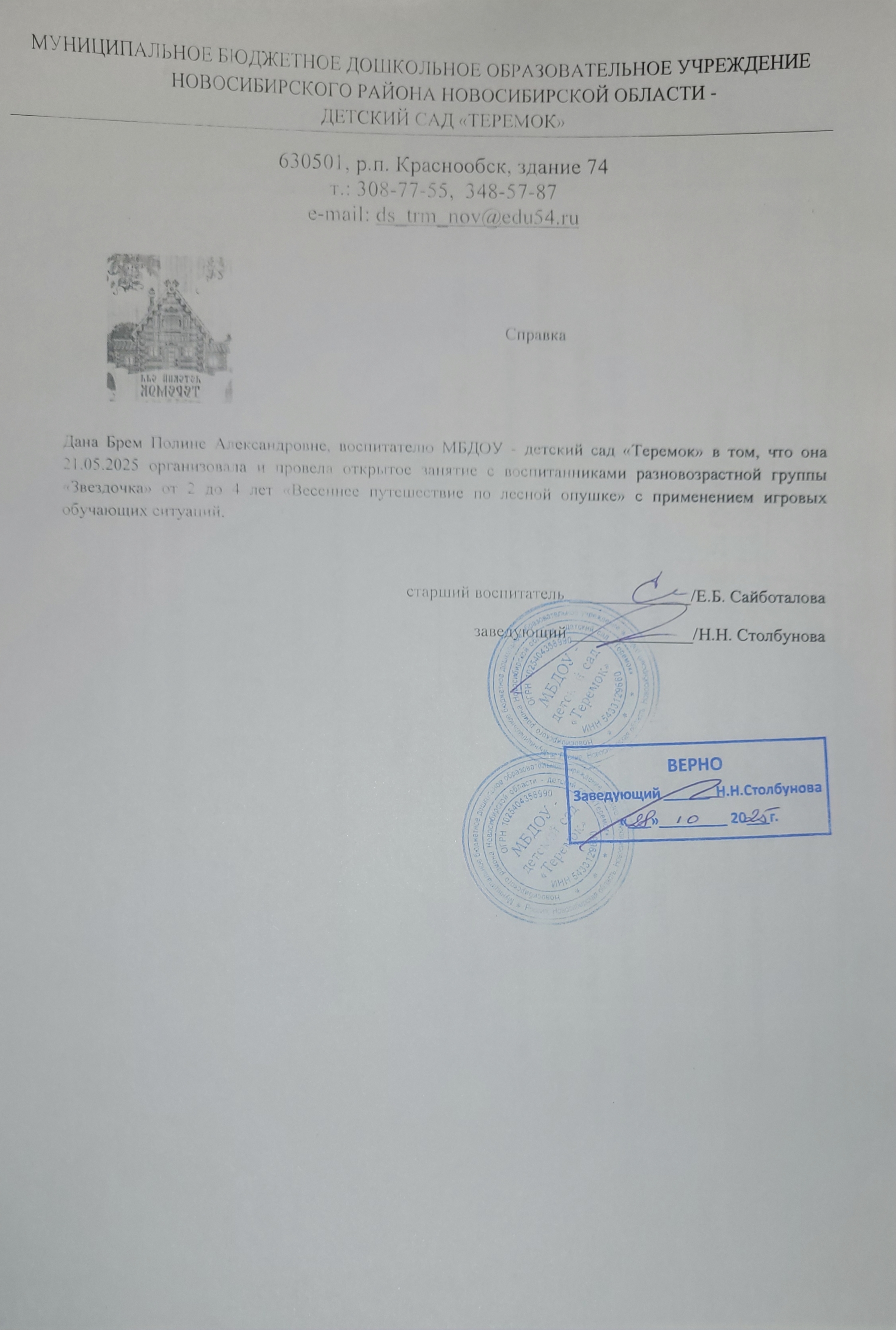 Справка об организации и проведении открытого занятия с воспитанниками разновозрастной группы с применением игровых обучающих технологий, 2025г.