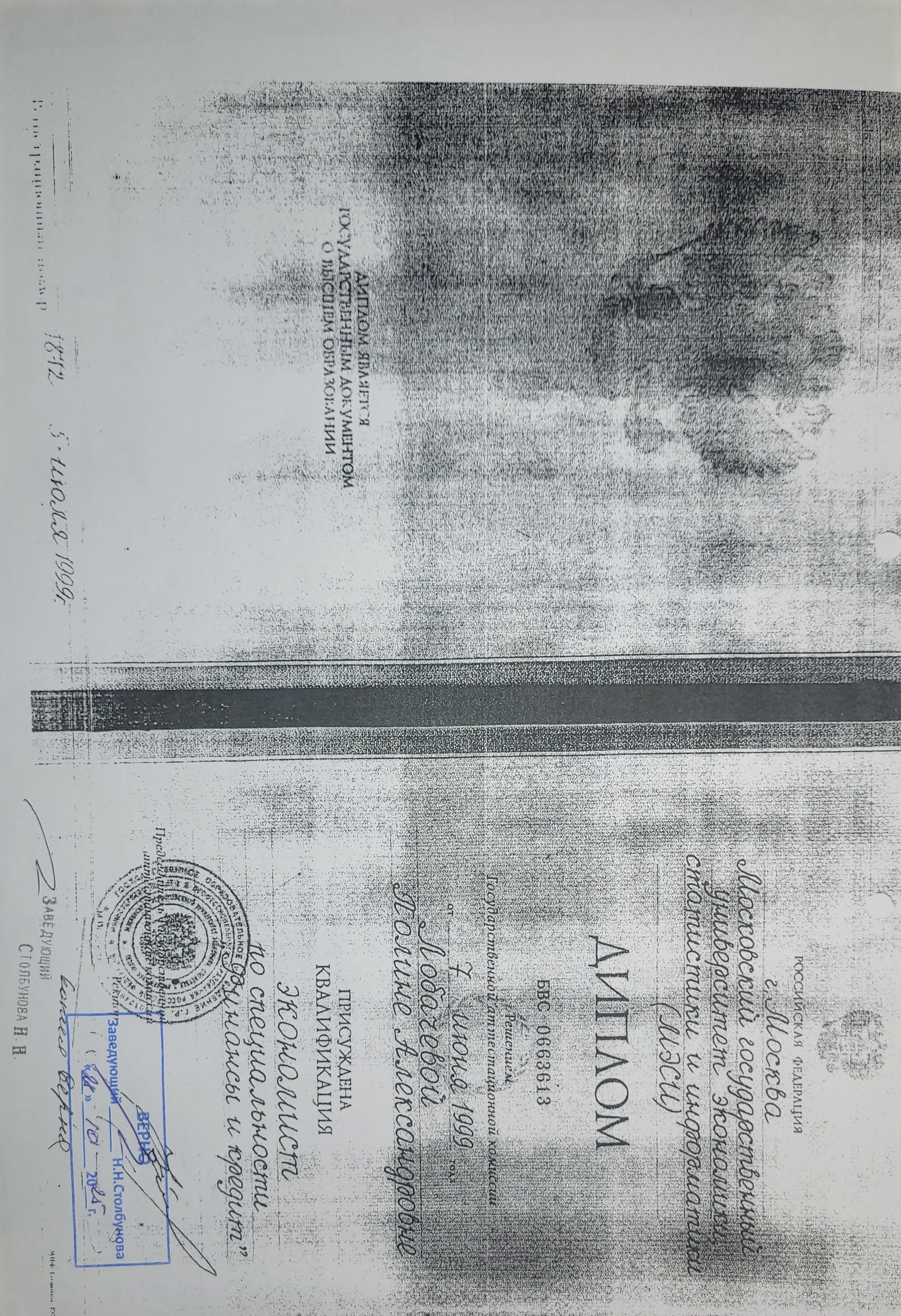 Диплом о высшем образовании Московского государственного университета экономики, статистики и информатики