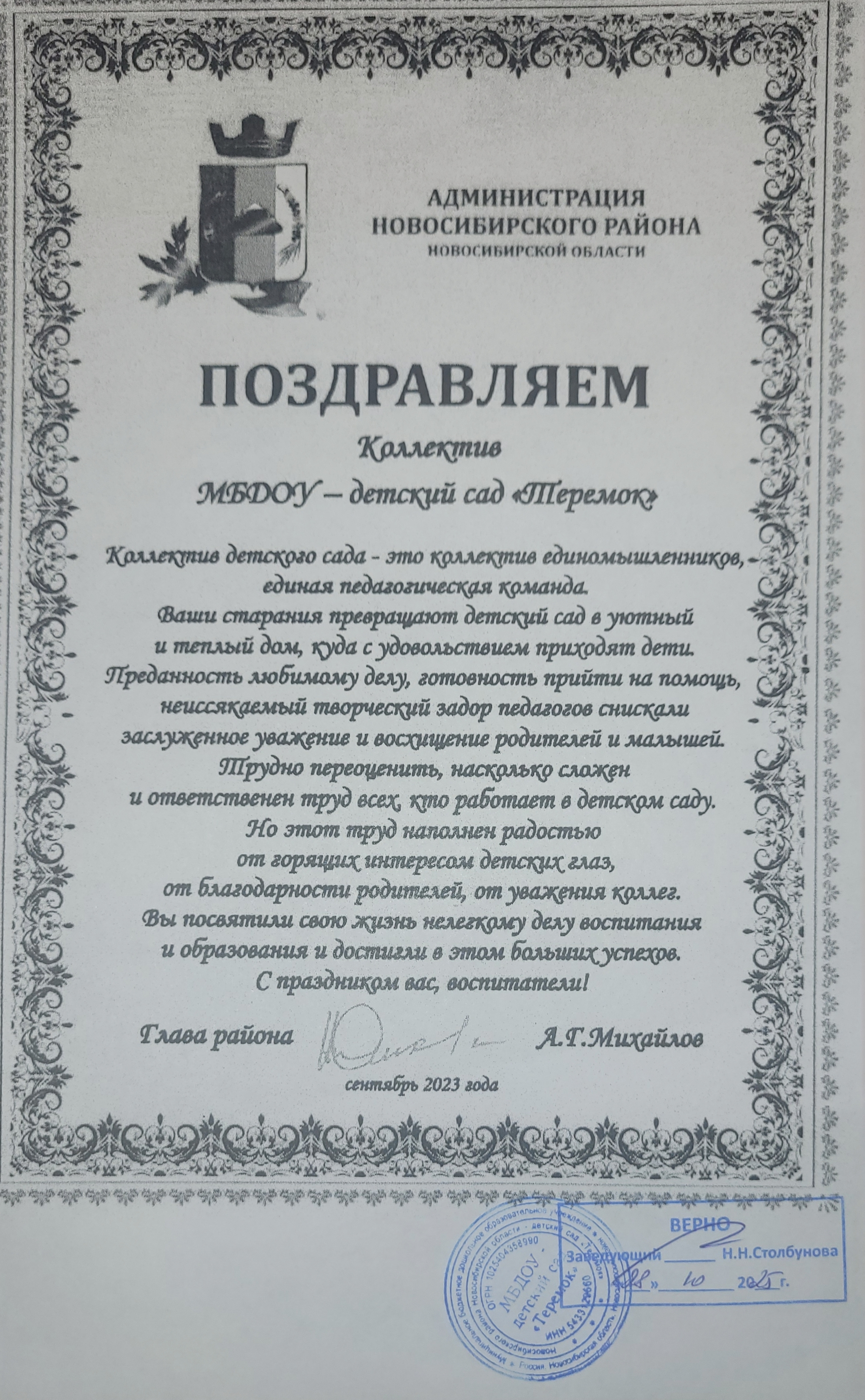 Поздравление А.Г. Михайлова коллективу МБДОУ - детский сад "Теремок" с днем воспитателя, 2023г.